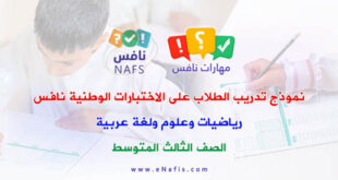 - دفتر تدريبات الاختبارات الوطنية نافس (رياضيات) صف ثالث ابتدائي