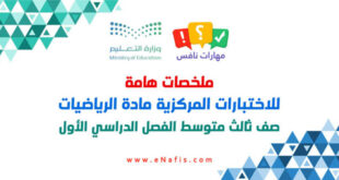 10. نموذج اختبار مركزي مادة الرياضيات صف ثالث متوسط الفصل الدراسي الأول