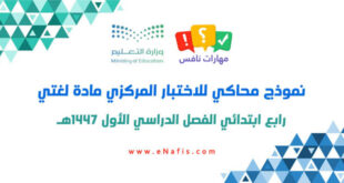 5. نموذج محاكي للاختبار المركزي مادة لغتي رابع ابتدائي الفصل الدراسي الأول 1447هـ – مهارات نافس