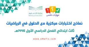 4. نماذج اختبارات مركزية رياضيات خامس ابتدائي الفصل الأول مع الإجابات وملف وورد للتعديل