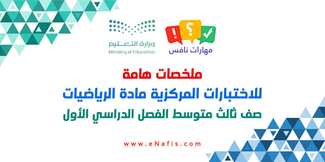 ملخصات هامة للاختبارات المركزية مادة الرياضيات ثالث متوسط الفصل الدراسي الأول