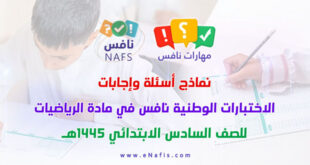 - (5) نماذج أسئلة وإجابات محاكية لاختبارات نافس الوطنية صف سادس ابتدائي رياضيات علوم قراءة