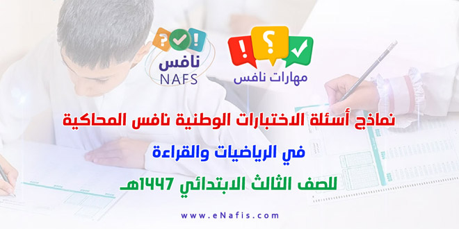 - نموذجين أسئلة وإجابات اختبارات نافس الوطنية رياضيات وقراءة الصف الثالث الابتدائي 2026م