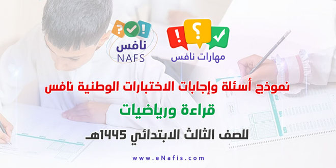 - نموذجين أسئلة وإجابات اختبارات نافس الوطنية رياضيات وقراءة الصف الثالث الابتدائي 2026م
